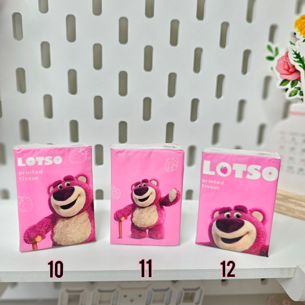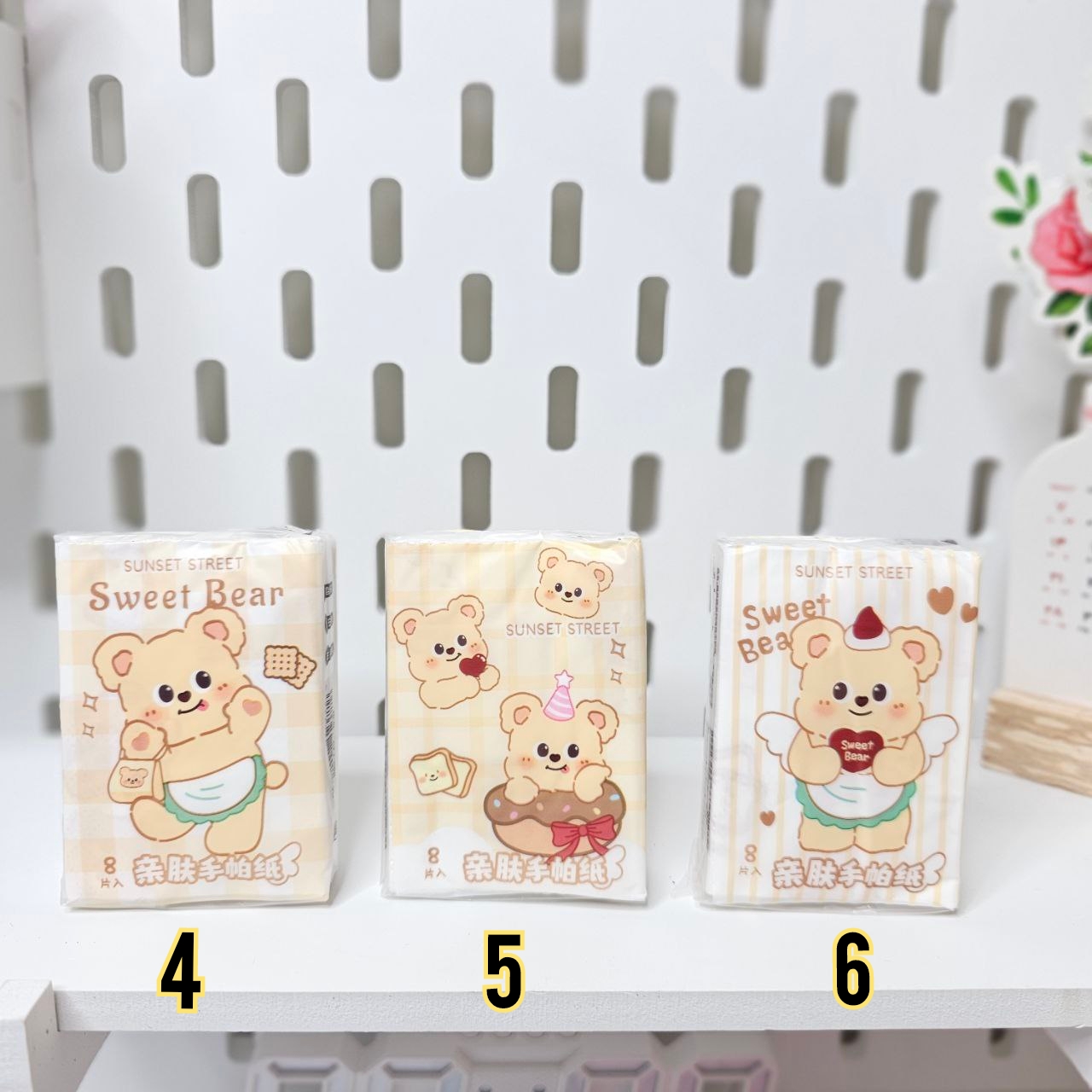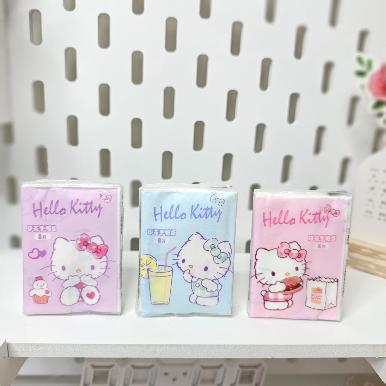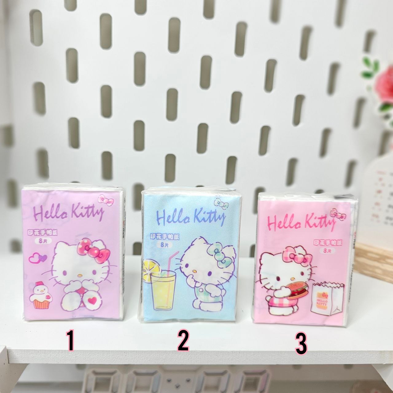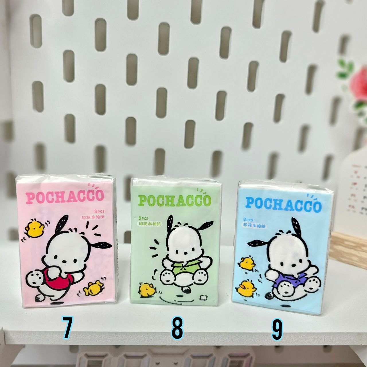 دستمالها طرح دار هستن و ابعاد دستمال باز شده: ۲۱ × ۲۱ سانتی متر است. ابعاد جعبه: ۵ × ۸ سانتی متر است و در هر بسته ۸ برگ دستمال ۲ لایه دارد.