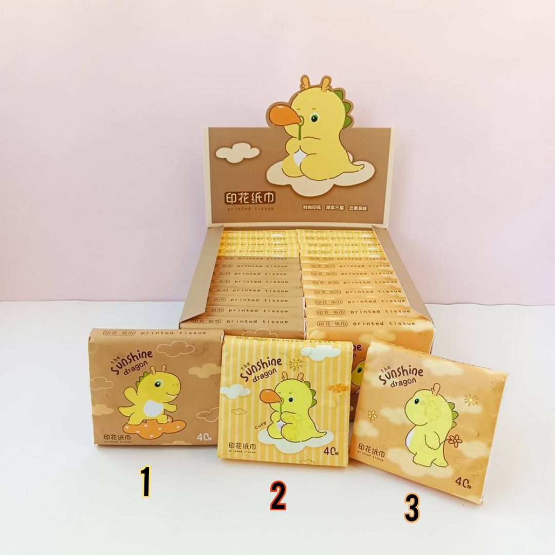 دستمالها طرح دار هستن 🍒ابعاد باز شده هر دستمال: ۱۹ × ۱۰.۵ سانتی متر 🍒 تعداد در بسته: ۴۰ ورق است🍒
