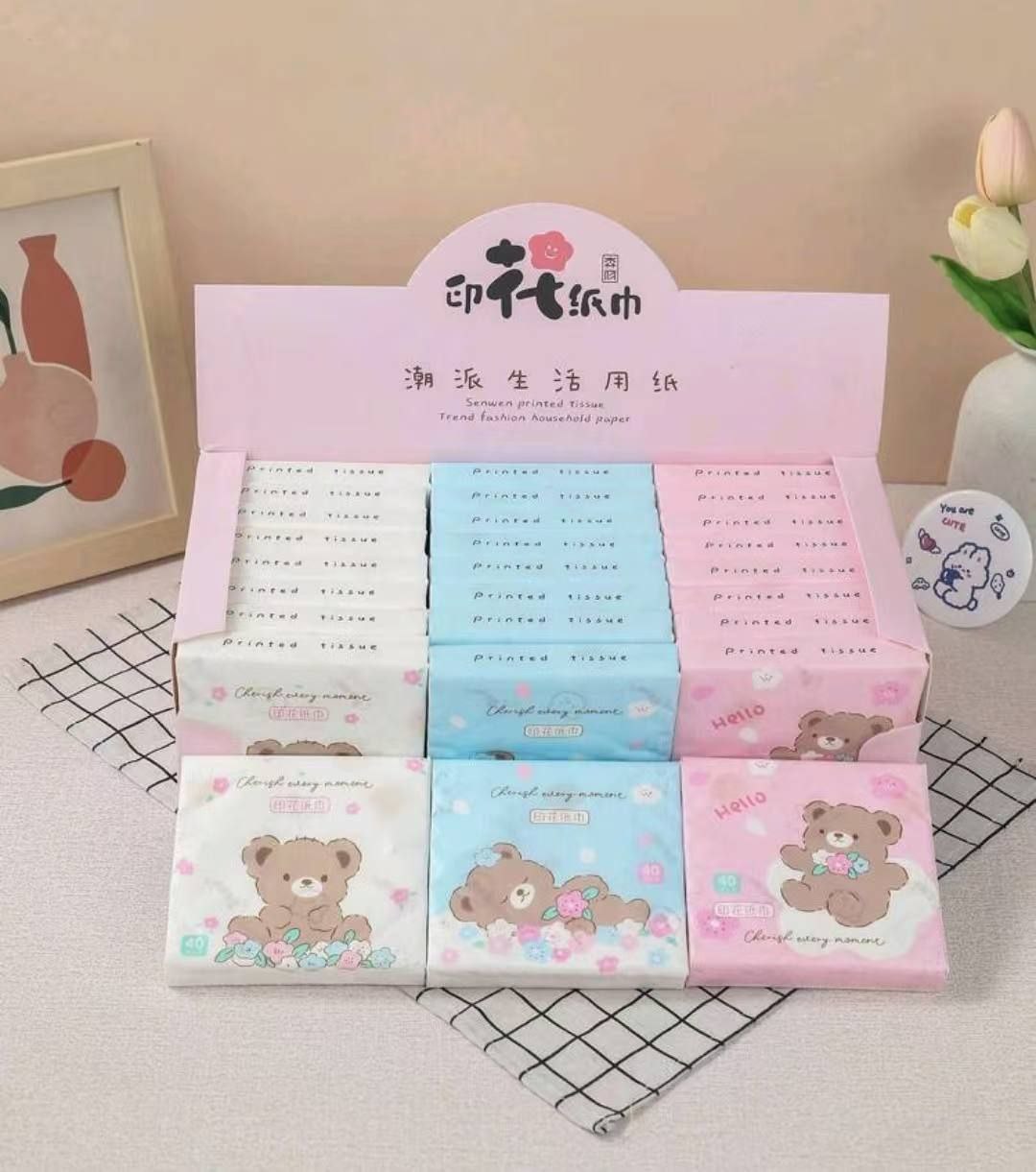 دستمالها طرح دار هستن 🍒ابعاد باز شده هر دستمال: ۱۹ × ۱۰.۵ سانتی متر 🍒 تعداد در بسته: ۴۰ ورق است🍒