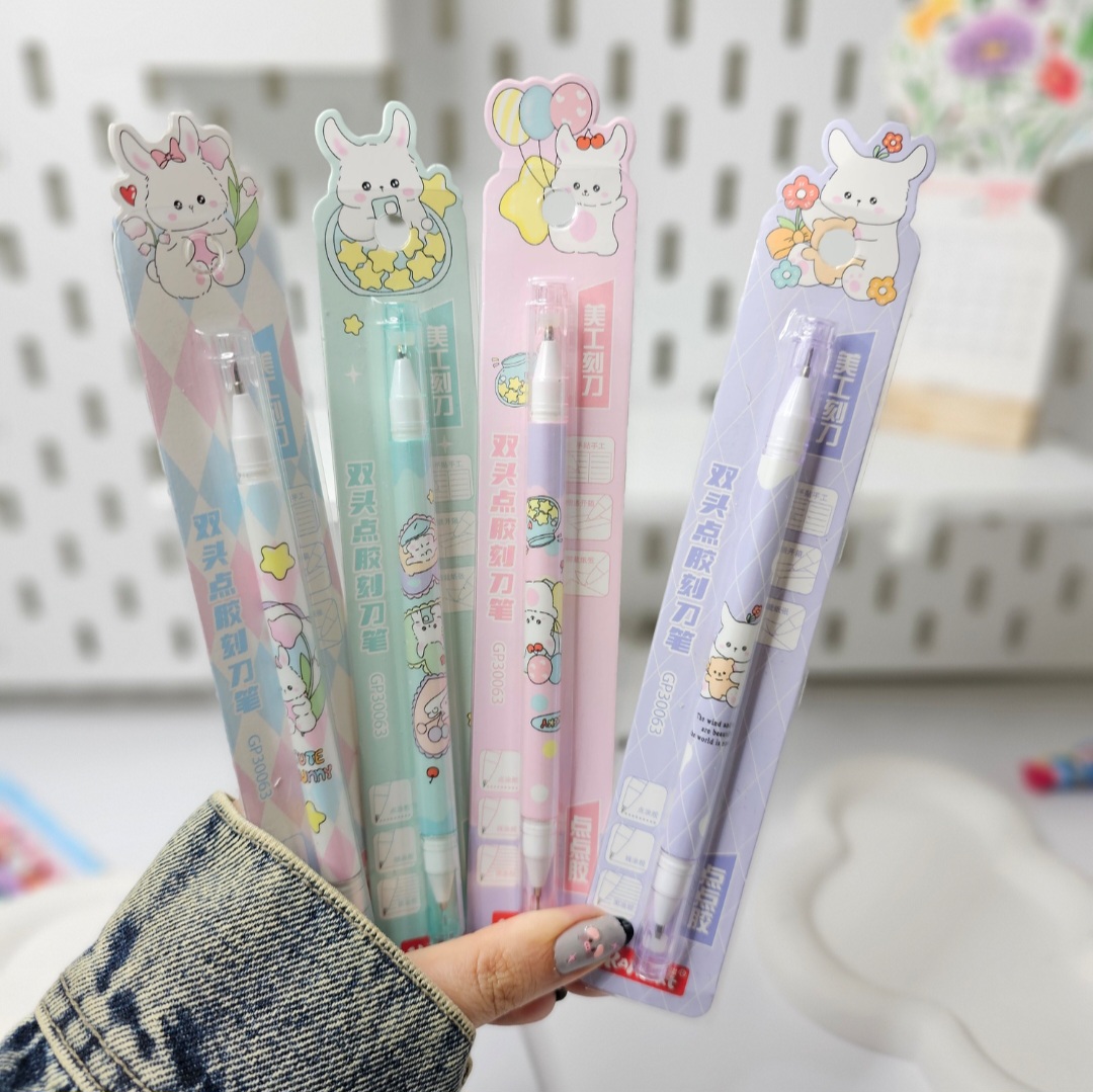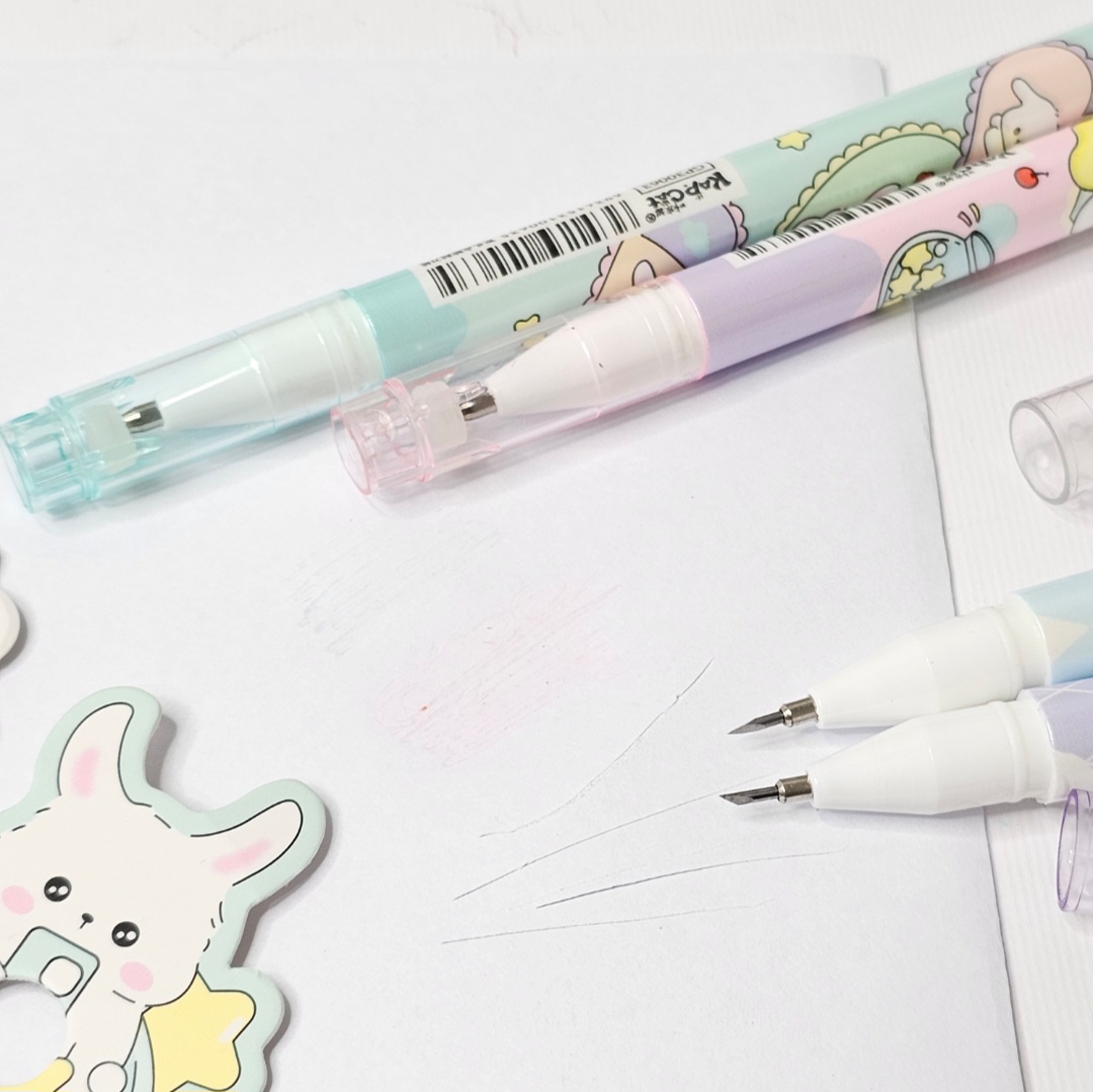 دو محصول پرکاربرد همزمان در یک محصول🍒یک سمت چسب خودکاری و یک سمت کاتر سوزنی هست 🍒 این چسب خودکاری تفاوتی که با بقیه چسب خودکاری ها داره این هست که در سرش یه واشر هست که از خشک شدن چسب جلوگیری میکند 🍒