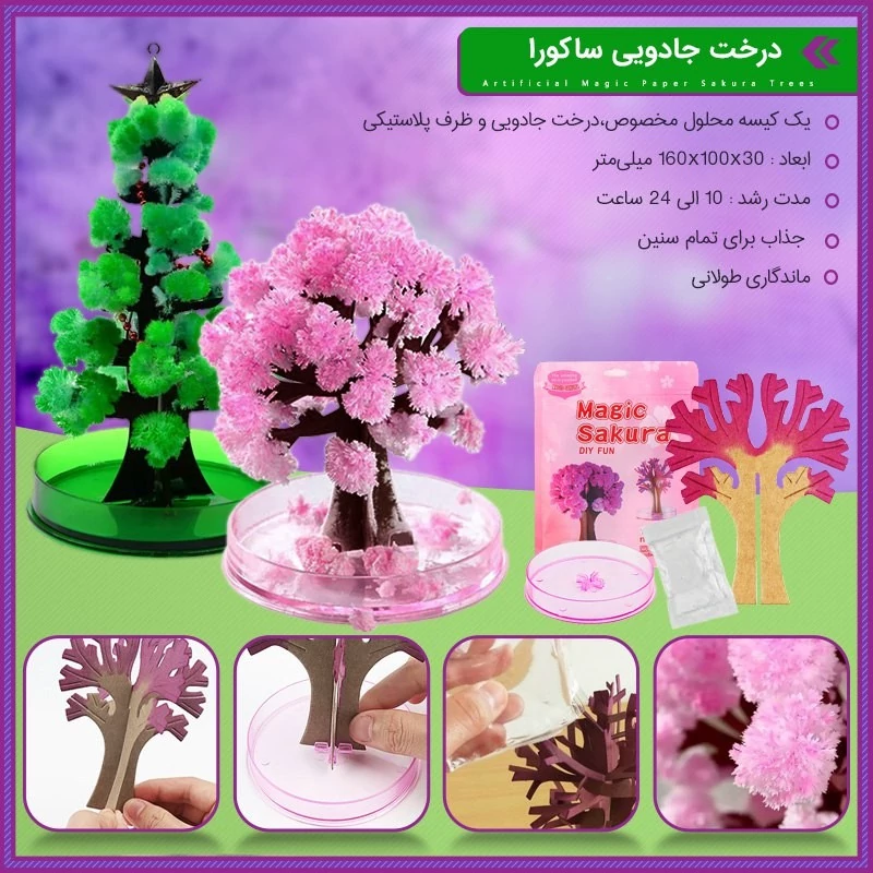 پک سوپرایزی طرح درخت و گل در ۲ رنگ صورتی و سبز 💚❤️ این محصول فوق کیوت یک پک جادویی هست 😉 مایعی که که درون پک وجود دارد هنگام ترکیب با شاخه های درخت مقوایی باعث ایجاد تبلور کریستالهای داخل کاغذ می شود که حس شکوفه دادن رو تداعی میکنه 😍ارزش یک بار تجربه کردن با این قیمت داره که حتما بهتون پیشنهاد میکنم 🥹مدت زمان مورد نیاز رشد : 10 الی 24 ساعت🎀ماندگاری: تا زمانیکه درخت تکان نخورد💥مناسب برای 6 سال به بالا🍁تذکر:اگر دستتان آغشته به مایع شد به چشم و دهان خود نزنید🍒