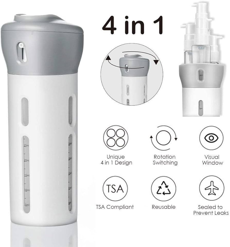کاربردی ترین محصول پیج 💫میخای بری سفر جا نداری با خودت شامپو و کرم ببری💫 یه دونه از این محصول بخر مفید و مختصر 💫 ۴ تا محفظه داره برای ۴ محصول مثل کرم و شامپو و روغن و ...😍قسمت هیجان انگیزش این هست که چرخشیه 🥂قسمت درب رو روی هر بطری بچرخونی محتویات اون اسپری میشهبسیار خاص و با کیفیت و کم جا🔻حجم هر بطری: ۴۰ سی سی🔻ابعاد بطری اصلی: ۲۰ سانتی متر
