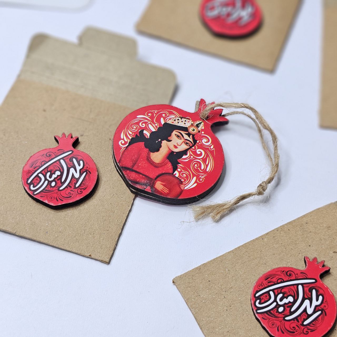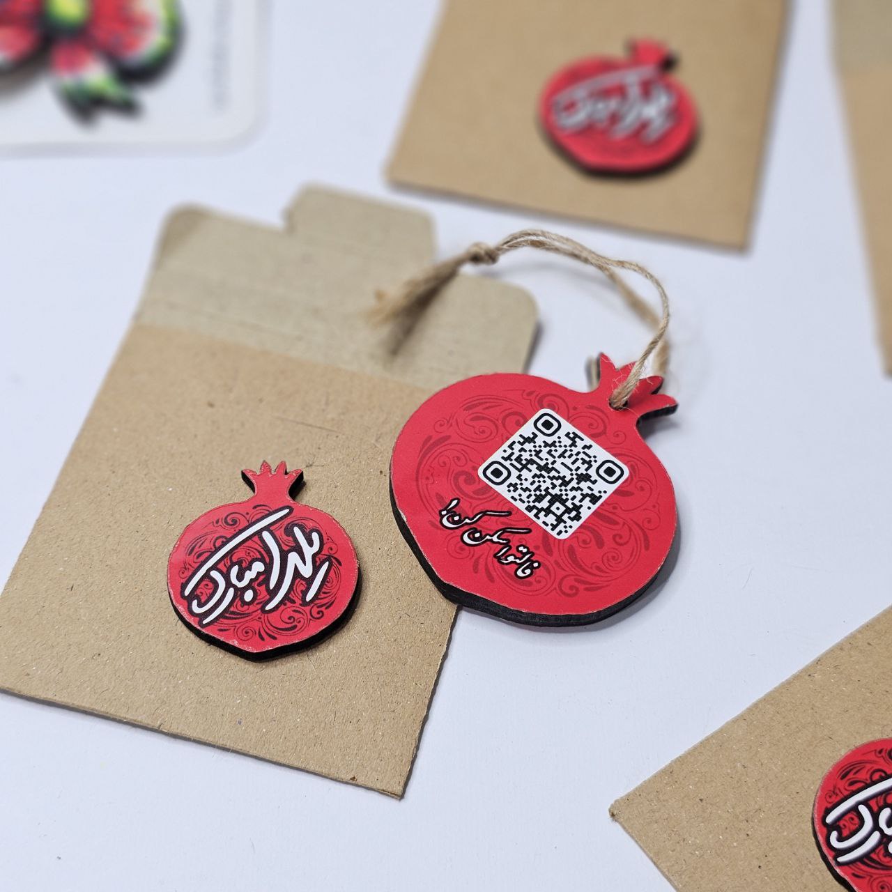 جنس: چوب 🍉 ابعاد: ۵ × ۶ سانتی متر🍉 متعلقات: یک پاکت کرافت حاوی یک انار کنف دار دو رو چاپ 🍉 پس از اسکن بارکد درج شده روی انار، فال حافظ روی صفحه گوشی شما نمایان خواهد شد. 🍉