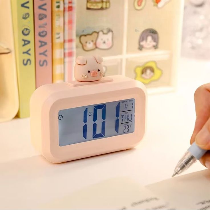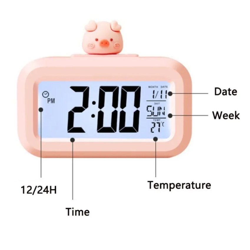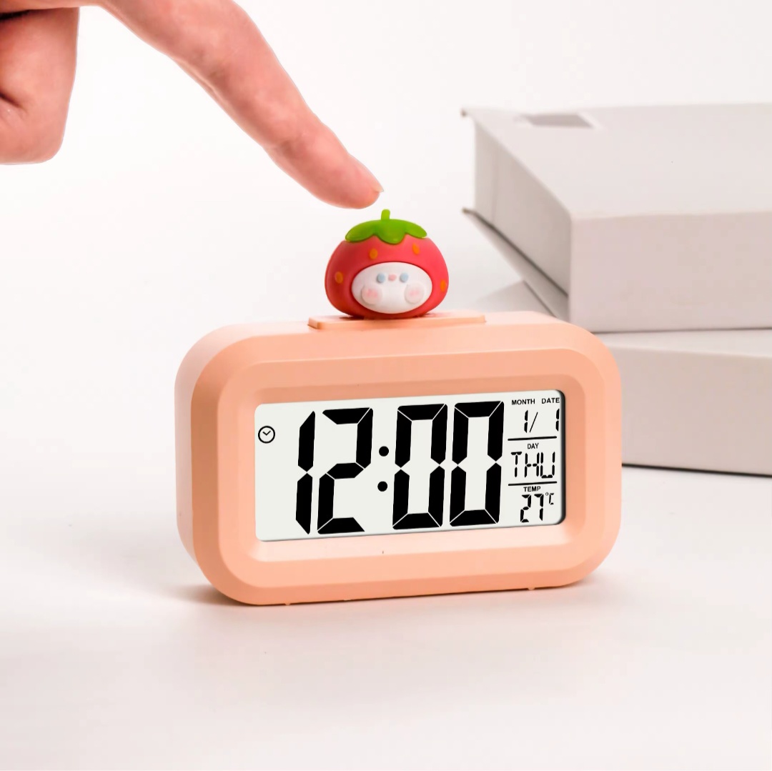 دکمه خاموش روشن 🍒 چراغ ال ای دی برای نور پس زمینه در شب (عروسک بالای ساعت را فشار دهید چراغ خاموش و روشن شود)🍒
